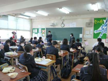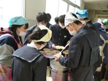 3学期が始まって、2日目の給食は、「正月の行事献立」でした。お雑煮やちらしずしなど、おいしそうです。たくさん食べたられたようですね。