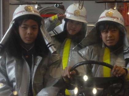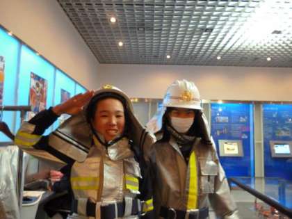 消防隊のコスチュームなどを着させてもらうこともできました。