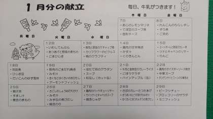 1月分の献立表も並べて掲示しています。