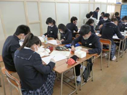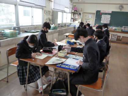 「未来への道を描こう」の題で、下絵を描きました。できた人は、画用紙に絵の具を使って作品を書き始めています。どんな絵が描かれるのか楽しみですね。