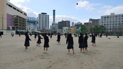昨夜の雨があがり、今日の昼休みも運動場ではたくさんの生徒たちが元気にボール遊びをしています。