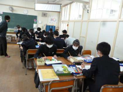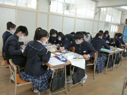 集中して丁寧に筆をうごかして描いています。完成が楽しみですね。