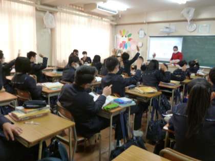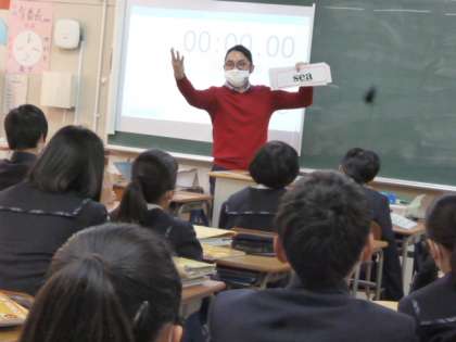 new wordの学習では、ジェスチャーをしたり、綴りを書いたりして学んでいます。