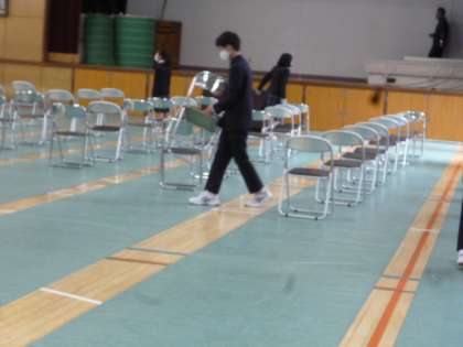 ソーシャルディスタンスのため、パイプ椅子を間隔をあけておきます。