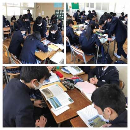 先日に引き続き、本日の3年英語の授業はプレゼン原稿の準備をしました。