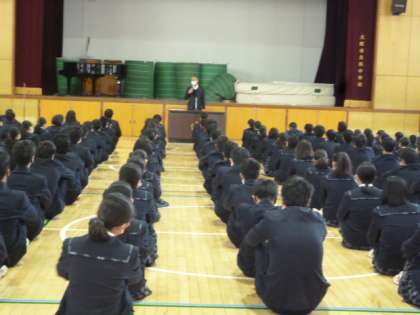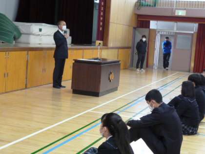 まず、校長先生からのお話を聞きました。公立高校の入試が控えていますが、3年間の集大成として、実力を発揮してくださいと伝えられました。