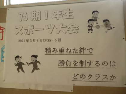 1年生は、明日の5・6時限目運動場でスポーツ大会を行います。