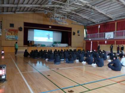 例年、この時期に「3年を送る会」を全校生徒が集まって行われましたが、