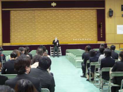 開式にあたり校長先生から、今年度の卒業証書授与式では、新型コロナウイルス感染症の拡大防止のため健康観察、マスクの着用、時短のためバインダーに卒業証書をつけて授与する、式で30分ごとに換気の時間をとるなどの説明をしました。