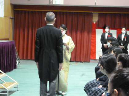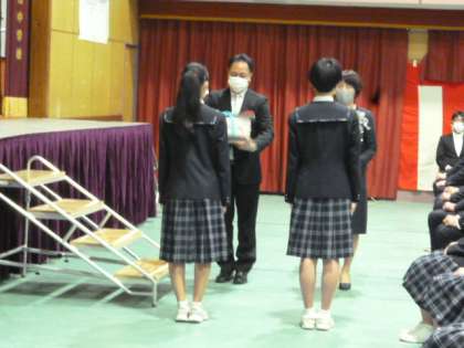 閉会の後には、卒業記念品の贈呈、卒業生保護者の謝辞、花束贈呈がありました。