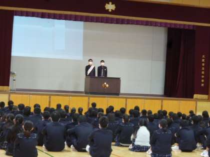 本日6時限目は、前期生徒会役員候補者「立会演説会」が行われました。