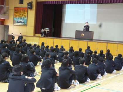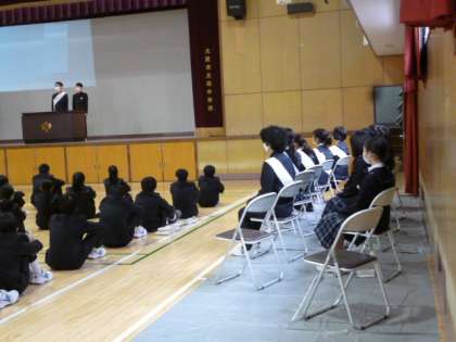 1・2年生徒が体育館に入り、整列しました。
