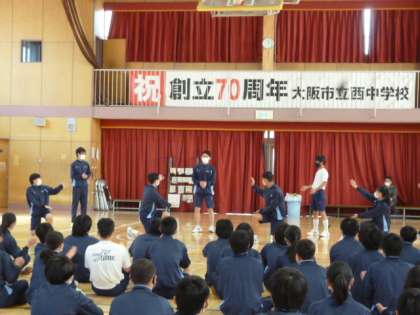 2−1,2−2は5時限目が体育の授業で「ダンス発表会」が行われました。