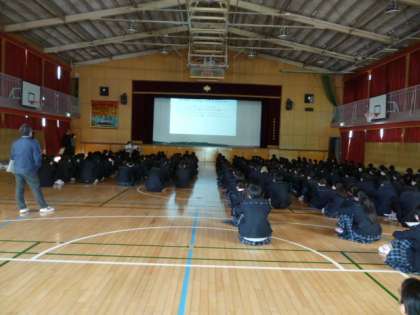 1・2年生は、2限目に体育館に入り、「薬物乱用防止教室」を行いました。