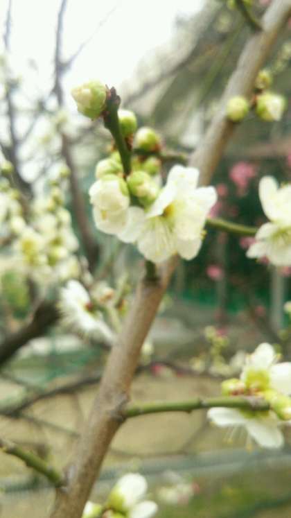 工事が終わった体育館の周りを歩いていると、紅白の梅が花を咲かせていました。