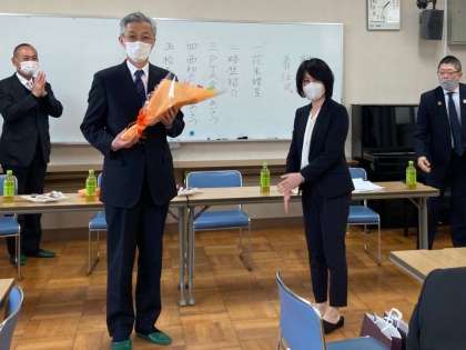 離任式とともに、新年度から着任される校長先生の紹介があり、温かく迎えられました。