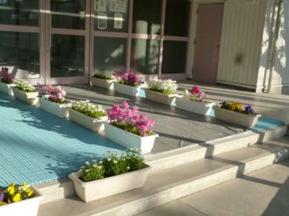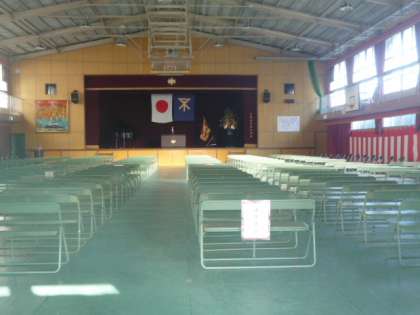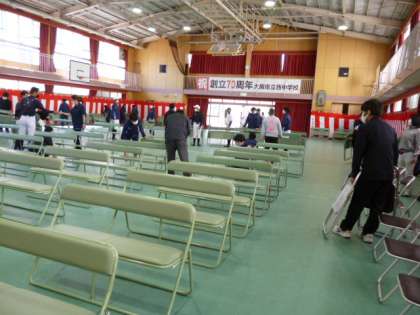 入学式の式場ができました。新入生も気持ちよく、会場に入ることができますね。準備ありがとうございます。