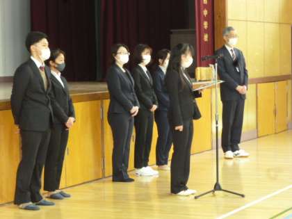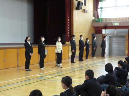 まず、離任された先生方、着任された先生方の紹介をしました。