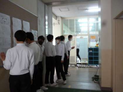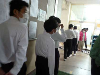 校医先生が聴診できるよう、静かに廊下にならんで待ちました。