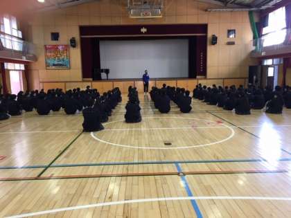本日木曜日は、2年学年集会です。チャイムとともに、時間通りに集会を始めることができました。