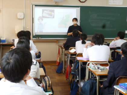 給食の後、2年生の授業の様子です。