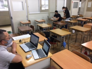 今日の3時間目には、3年生の国語のオンライン授業がTeamsを使って行われました。普段とは異なり、学年の2クラス全員に一斉に行われました。教科担当の先生が授業をして、学年の先生が出席など確認しています。オンラインの授業をするためには、学校ではこんな風にしています。先生からの質問に(アイコンで)手をあげたり、指名されてしっかりと答えたりしている様子は、さすが3年生だと感じさせてくれるものでした。