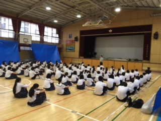 いよいよこれからは平常の学校生活に戻っていきます。早速2年生は、朝の学年集会を行いました。空調設備を設置するために今は少し狭い体育館ですが、大森先生の「様々な困難を前にしても、課題を分離してとらえることで、解決の糸口は見つかる」という講話を全員が真剣に聞いていました。