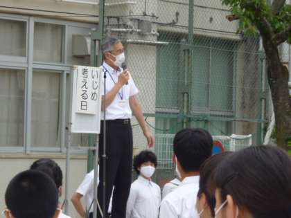 次に、生徒会からも、「いじめについて考えよう」の日に関して、生徒会発行の「WESTERN]でアンケートの結果等を伝える連絡がありました。