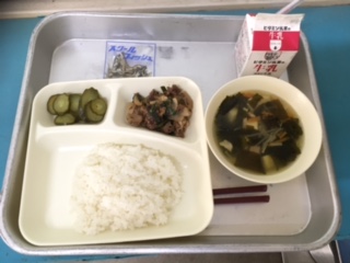 本日の給食は、プルコギ とうふのスープ きゅうりの甘酢づけ ミニフィッシュ でした。