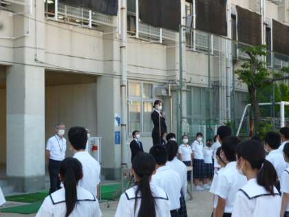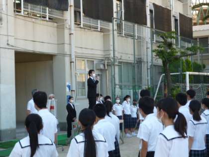 今日から3週間、教育実習の先生が来られます。全校集会で、3名の教育実習の先生が紹介されました。授業や学校生活で生徒の皆さんとともに参加され、学ばれます。よろしくお願いします。