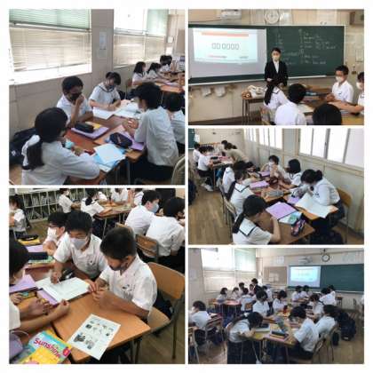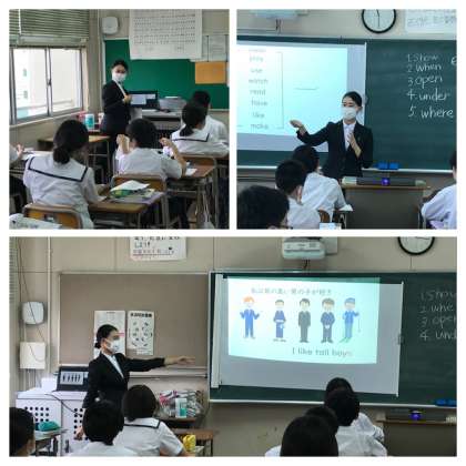 1年生にも英語の教科で実習生が来られていて、現場の授業や学級活動を通して学んでおられます。