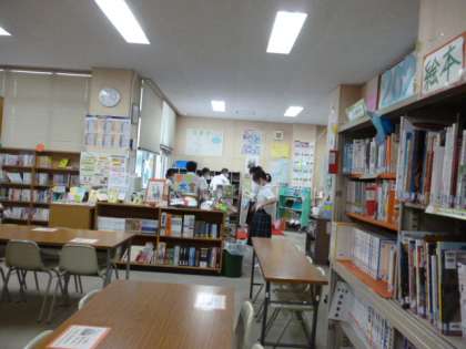 運動場で、ボールを使っている人もいれば、図書館で本を選んで読んでいる人もいます。どちらも楽しい時間ですね。