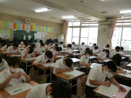 2・3年生も、期末テストでやはり緊張した様子で、問題に向かっています。