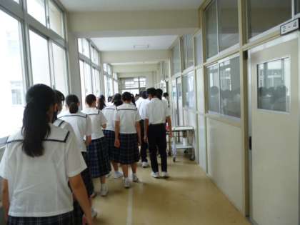 期末テストが終わり、3時限目は避難訓練が行われました。