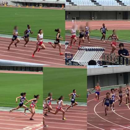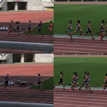 共通女子200mに出場した滝本さんは予選で自己ベストを大きく更新し、準決勝進出を果たします。惜しくも決勝進出はならなかったものの、同じ組で走った選手が大阪中学新記録を出したことは、後々自慢できることでしょう。「この記録出たとき私も一緒に走っとってんで」と。2年女子100mの沖口さん、共通女子800mの谷元さんも自己ベスト/西中ベストを更新しました。1年女子100mの田中さんも自己ベスト更新です。