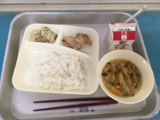 本日の給食は 豚肉のしょうゆマヨネーズ焼き 五目汁 きりぼしだいこんのゆずの香あえ でした。
