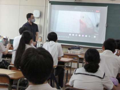 梅雨空の朝ですが、生徒たちは元気に登校してきました。雨は降っていませんが、今日は、全校集会ではなく、教室でTeamsを利用して全校朝礼を行いました。校長先生は、先週のお話から、テストが終わった後の大切なことを、言葉を示しながらお話をしていただきました。どのクラスも、画像と音声がよくつながっていました。
