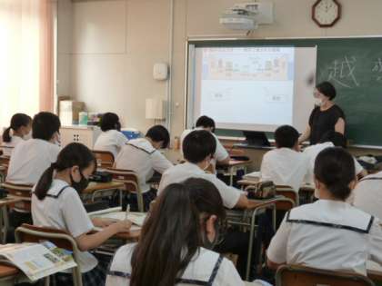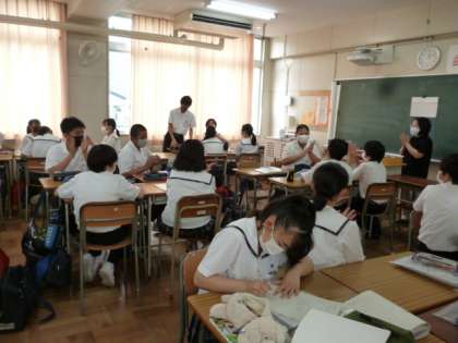 4時限目 2−1は社会、2−2は家庭科の授業です。
