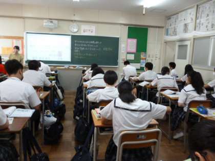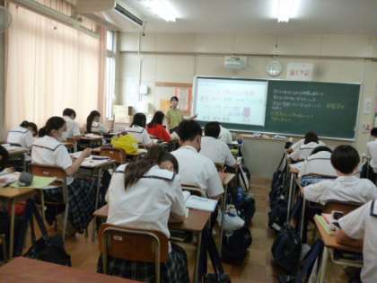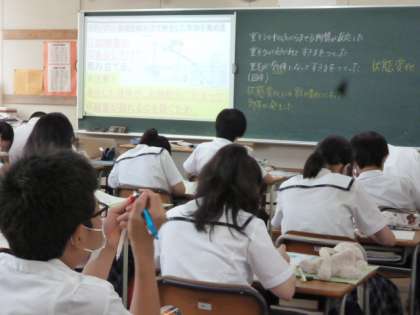 2時限目 2−2は理科の授業です。「炭酸水素ナトリウム(重曹)」を使った実験について学習しています。実験に備えて、習ったことは覚えておこう!!