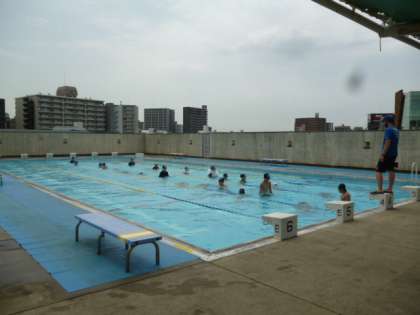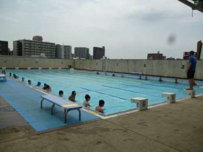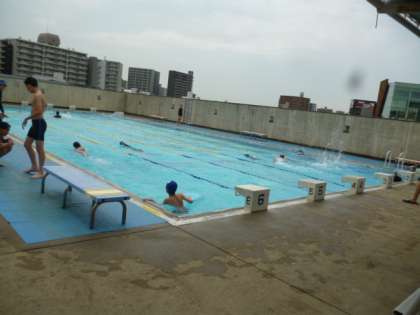 3時限目 1−3は体育の授業です。梅雨空で雨が続きましたが、今日は晴れ間が見え、プール水泳がおこなわれてい。1年生は、中学校のプールで少し緊張しながらも、しっかり泳いでいます。