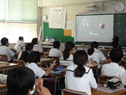 英語では動画を、社会はインドネシアの資料や画像を見て学習しています。