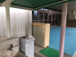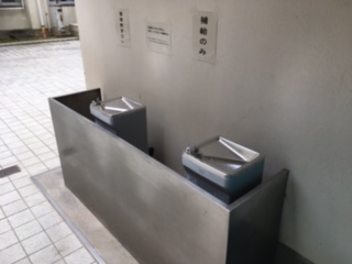 これまでは、中庭に4台あったのですが、故障して全く使えなかったり、使えるものもかなり不調であったため、中庭に2台、新たに、体育館入り口に1台の計3台を新設していただきました。早速本日午後に活動している部員たちが利用していました。