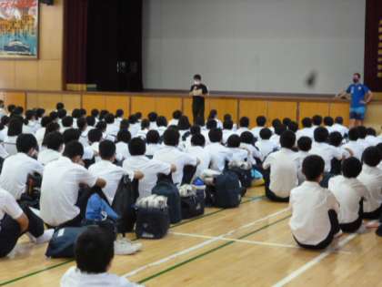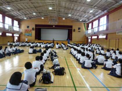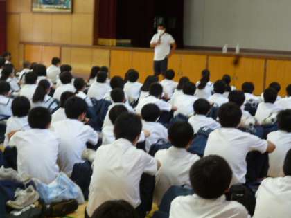 放課後、部活動生徒は、体育館へ入り、各部ごとに整列して部活動集会が行われました。1学期も明日で終わり、夏休みの部活動の前に、注意することを確認しました。また、どのクラブの部員も試合や発表の成績だけでなく、いろいろな人の支援があって部活動ができることに気づき、人として大切なことを学んでほしいです。