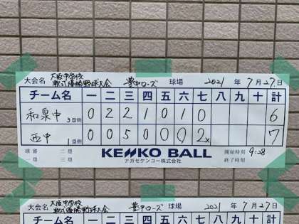 野球部は本日、大阪中学校軟式優勝野球大会の6回戦に臨みました。