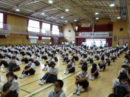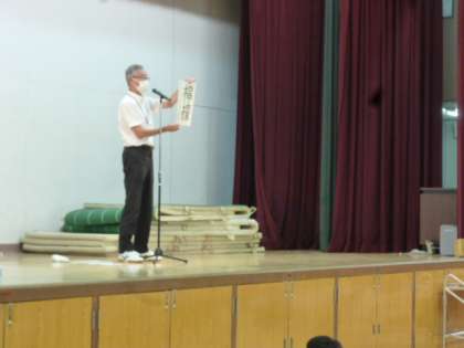 校長先生からは夏休みの頑張りをほめていただきました。そして、コロナ感染症が拡大している中、学校の活動が行えるように、感染症対策を一層しっかりやっていくことや、注意点が伝えられました。