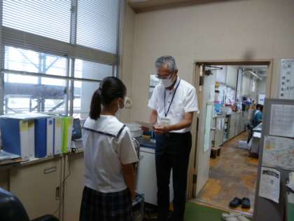 U-16陸上競技大会、ジャベリックスローで3年石田さんが3位、砲丸投げ(1.2年)で2年の前田君が3位の賞状を授与されました。