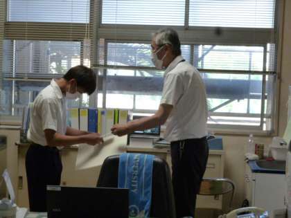 陸上部は、9/19(日)ヤンマーフィールド長居で行われた大阪市秋季総体で、1年田中さんが100mで3位、1年上平さんが800mで2位、2年井上君が800mで1位で賞状を授与されました。