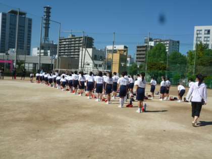 中学校の体育大会が初めてなので、整列の場所から、1つ1つ説明を聞き、動いて覚えています。