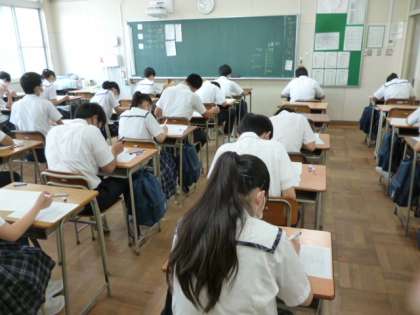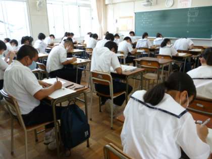 今日は国語、英語、社会の3教科のテストです。問題に向かって、一生懸命に取り組んでいました。