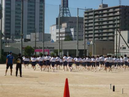 今日は、1年が1・2時限、2年が3・4限、3年が5・6限に学年練習を行いました。開会式の入場の仕方や隊形など、説明を受け、練習をしました。